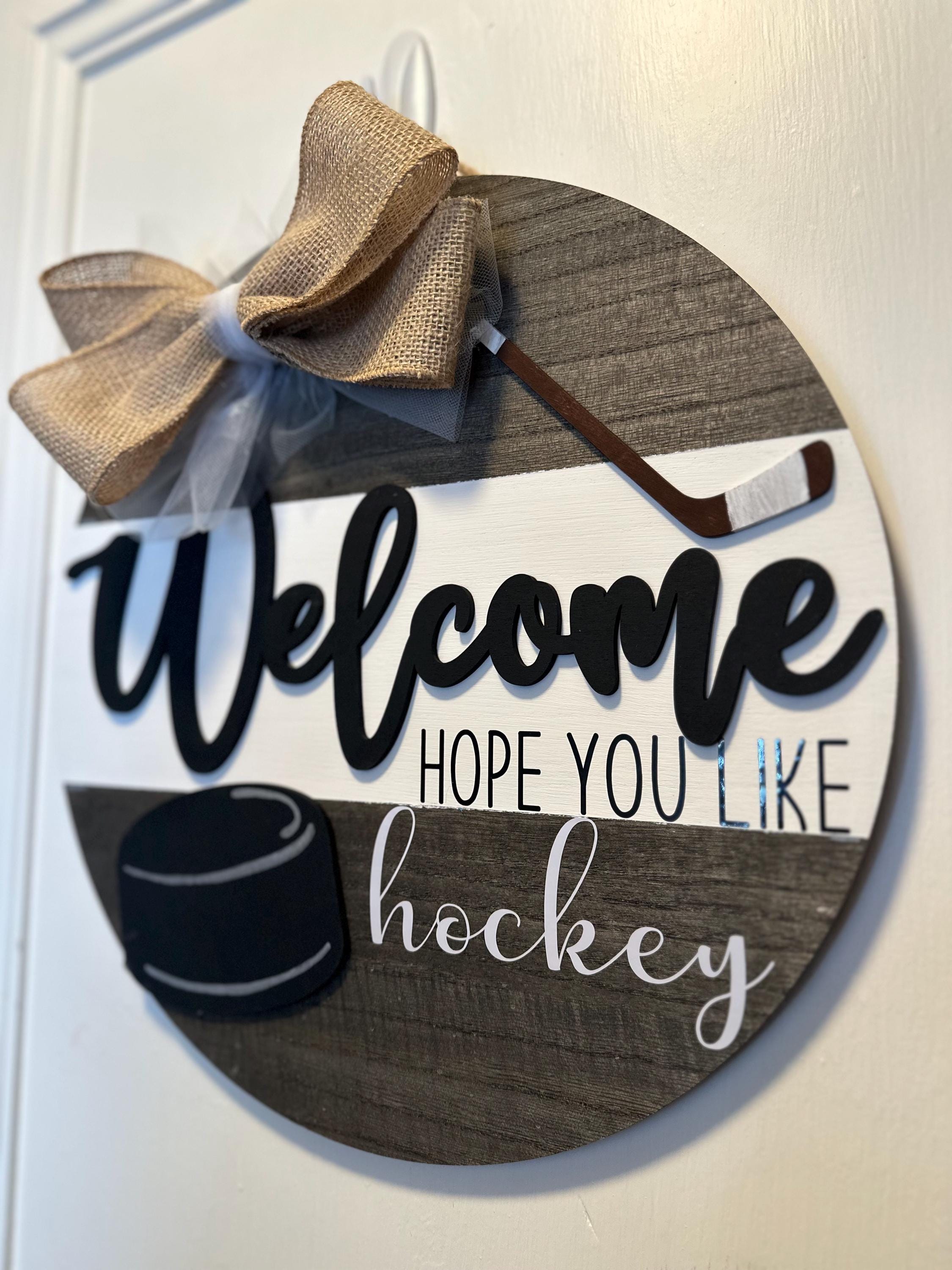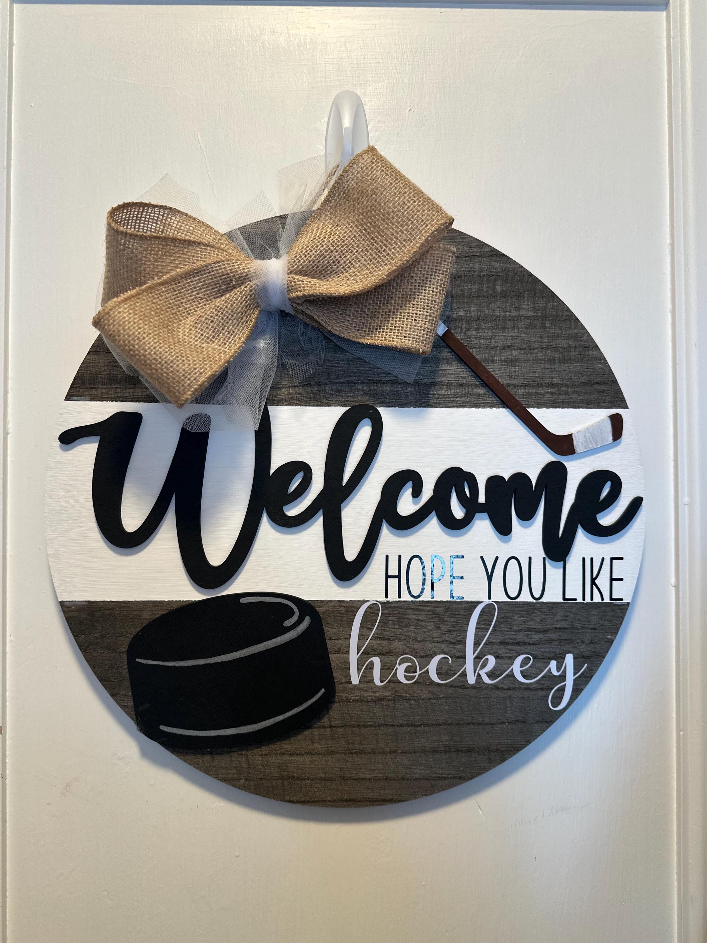 Welcome to all the hockey lovers out there! This sign is for any hockey-loving household that also loves to welcome its guests!